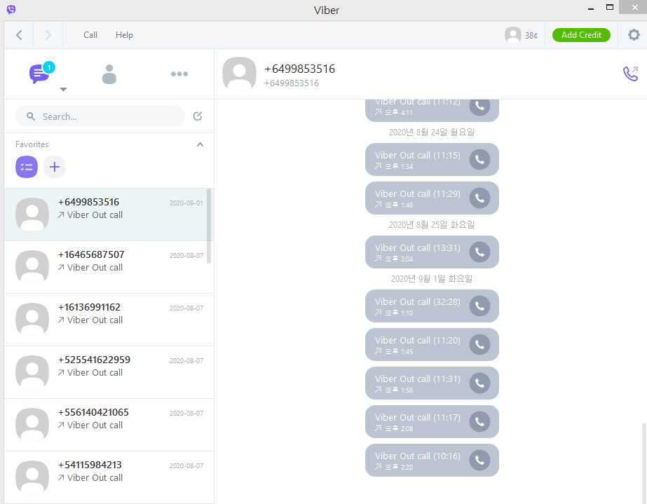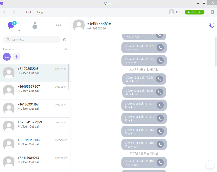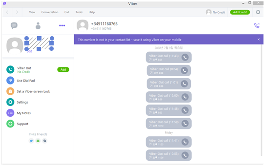 Viber앱으로 통화시도