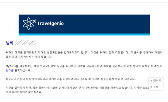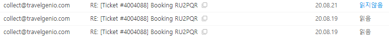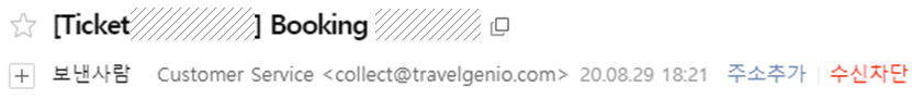 아무 생각없이 skyscanner를 통해서 예약을 했던 나는 내가 예약한 여행사가 어딘지도 몰랐다. 당황하며 집에 와서 찾아보니 Travelgenio였고(확인 메일에 있었다. 당황했으니 집까지 가서야 정신차리고 찾아보니 있던 거다. ㅎㅎ), 또 검색을 하고나서야 이 여행사가 연락이 어렵기로 악명높은 회사라는 걸 알게 되었다.